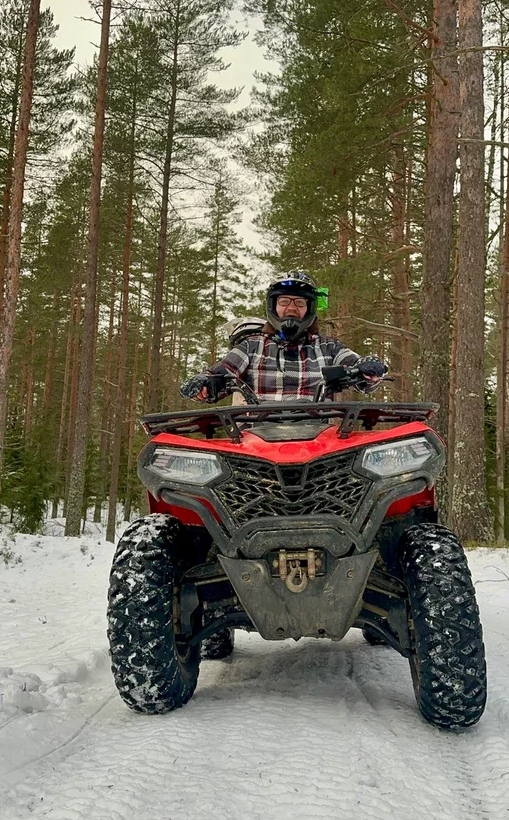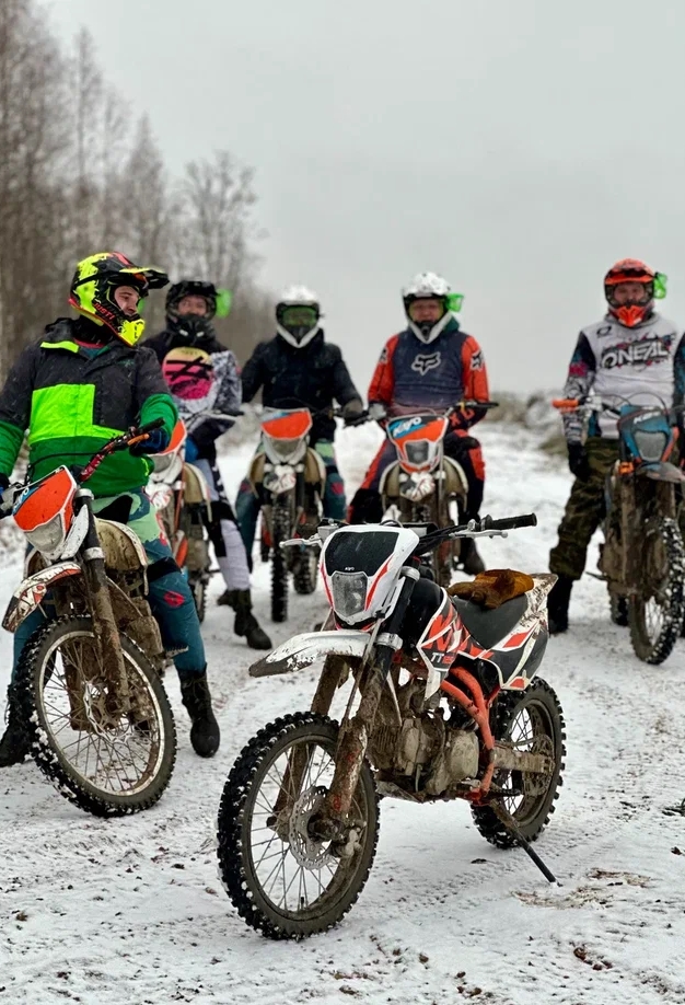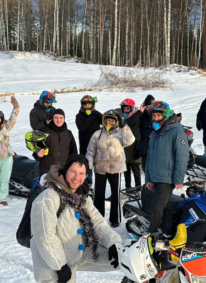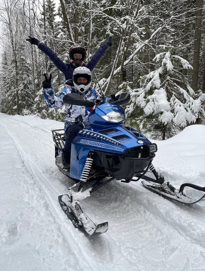 - После инструктажа участники садятся на выбранную технику: квадроциклы, снегоходы, мотоциклы или сноубайки.